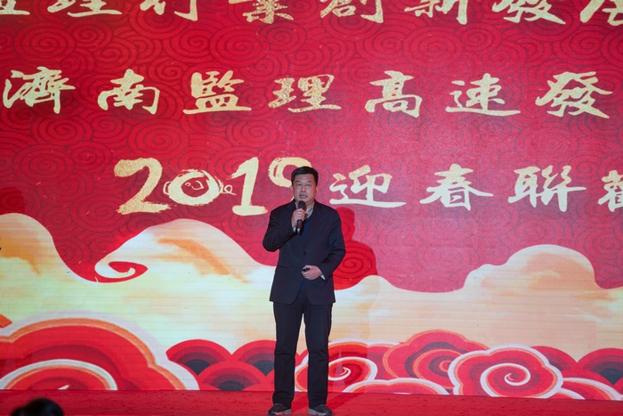 2019年2月2日下午,為慶祝改革開放四十周年、監(jiān)理行業(yè)發(fā)展三十周年、濟南監(jiān)理高速發(fā)展二十年,由濟南監(jiān)理團委主辦的2019年迎春聯(lián)歡晚會在山東大廈金色大廳隆重舉行。山東省住建廳原巡視員耿慶海廳長,省城鎮(zhèn)化工作領導小組辦公室專職副主任宋錫慶副廳長,濟南市城鄉(xiāng)建設委員會原副書記、副主任張棟臣同志,濟南市城鄉(xiāng)建設委員會原巡視員譚少軍同志,濟南市城鄉(xiāng)建設委員會巡視員史向中主任,濟南市城鄉(xiāng)建設委員會總工程師王冠一副主任 ,市重點辦原副主任崔兆林等領導作為特邀嘉賓蒞臨現(xiàn)場,濟南監(jiān)理黨委書記、董事長兼總經理林峰,副總經理紀森、李宏偉、高峰、王新及財務總監(jiān)趙麗出席晚會并與濟南監(jiān)理職工代表及社會各界人士共350人觀看晚會。