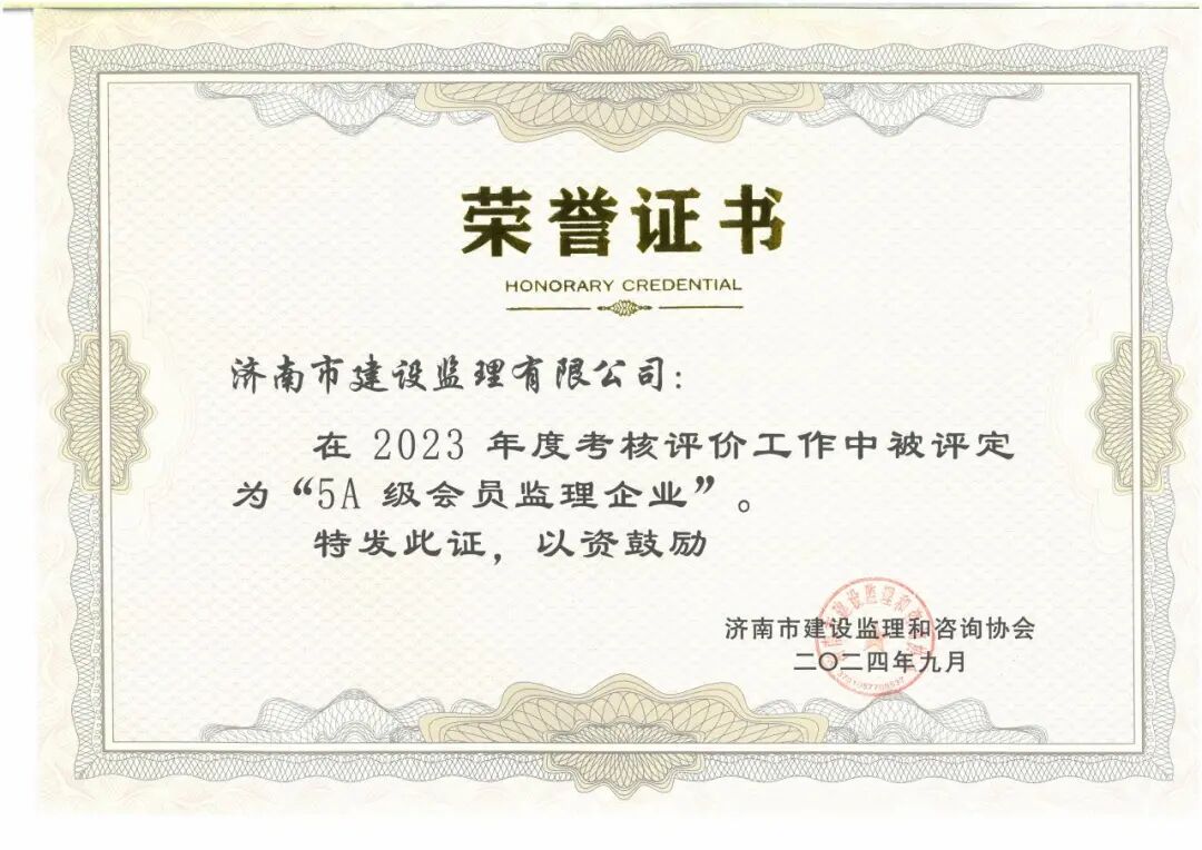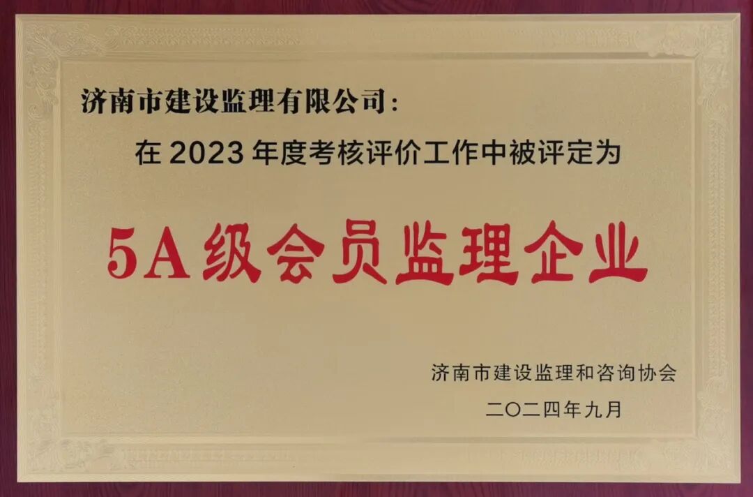 喜報!濟(jì)南監(jiān)理榮獲中國工程監(jiān)理AAA級信用企業(yè)及濟(jì)南市5A級會員監(jiān)理企業(yè)